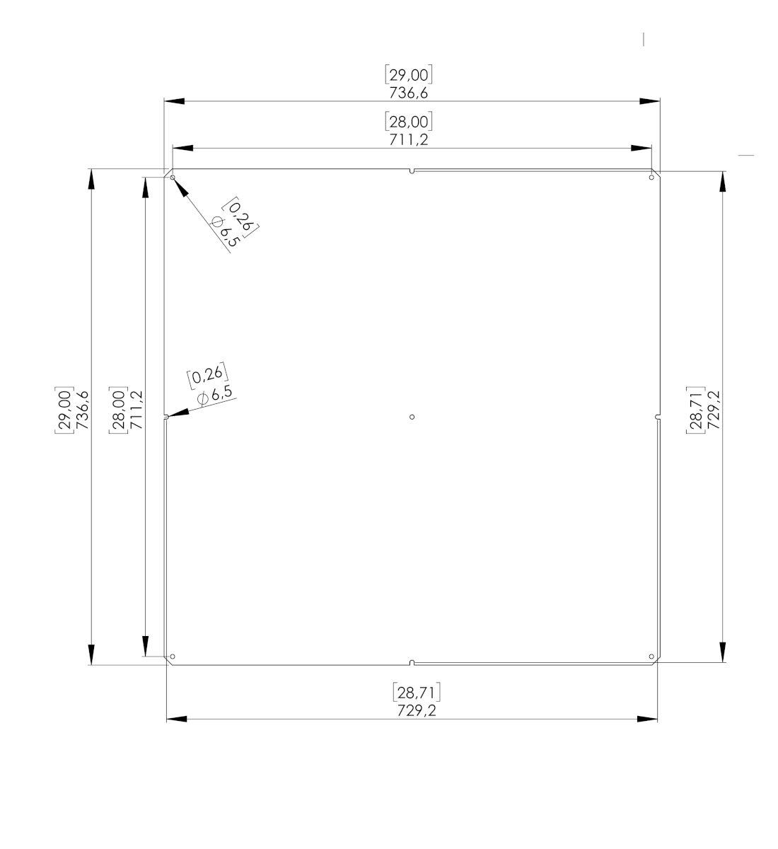 Dimensions Height (inch): 29 Width (inch): 29 Depth (inch): 0.1 Height (mm): 736.6 Width (mm): 736.6 Depth (mm): 2.6 -